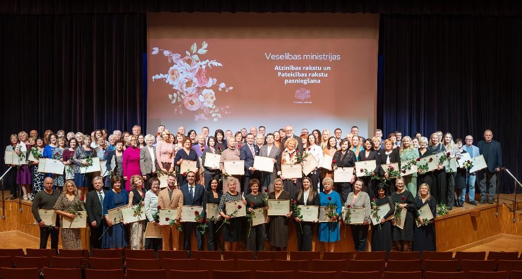 Lai godinātu izcilus veselības aprūpes, sabiedrības veselības un farmācijas jomas profesionāļus par viņu nozīmīgo ieguldījumu Latvijas veselības sistēmas stiprināšanā un attīstībā, piektdien, 7. novembrī, notika svinīgā apbalvošanas ceremonija, kurā veselības ministrs Hosams Abu Meri pasniedza Veselības ministrijas Atzinības un Pateicības rakstus.